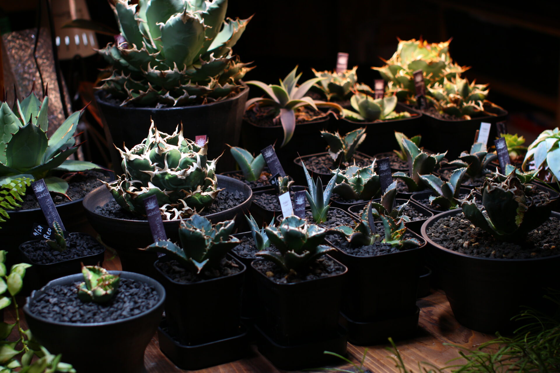 • 力を入れているお店ではかなりの種類のアガべ、多肉植物がおいてある