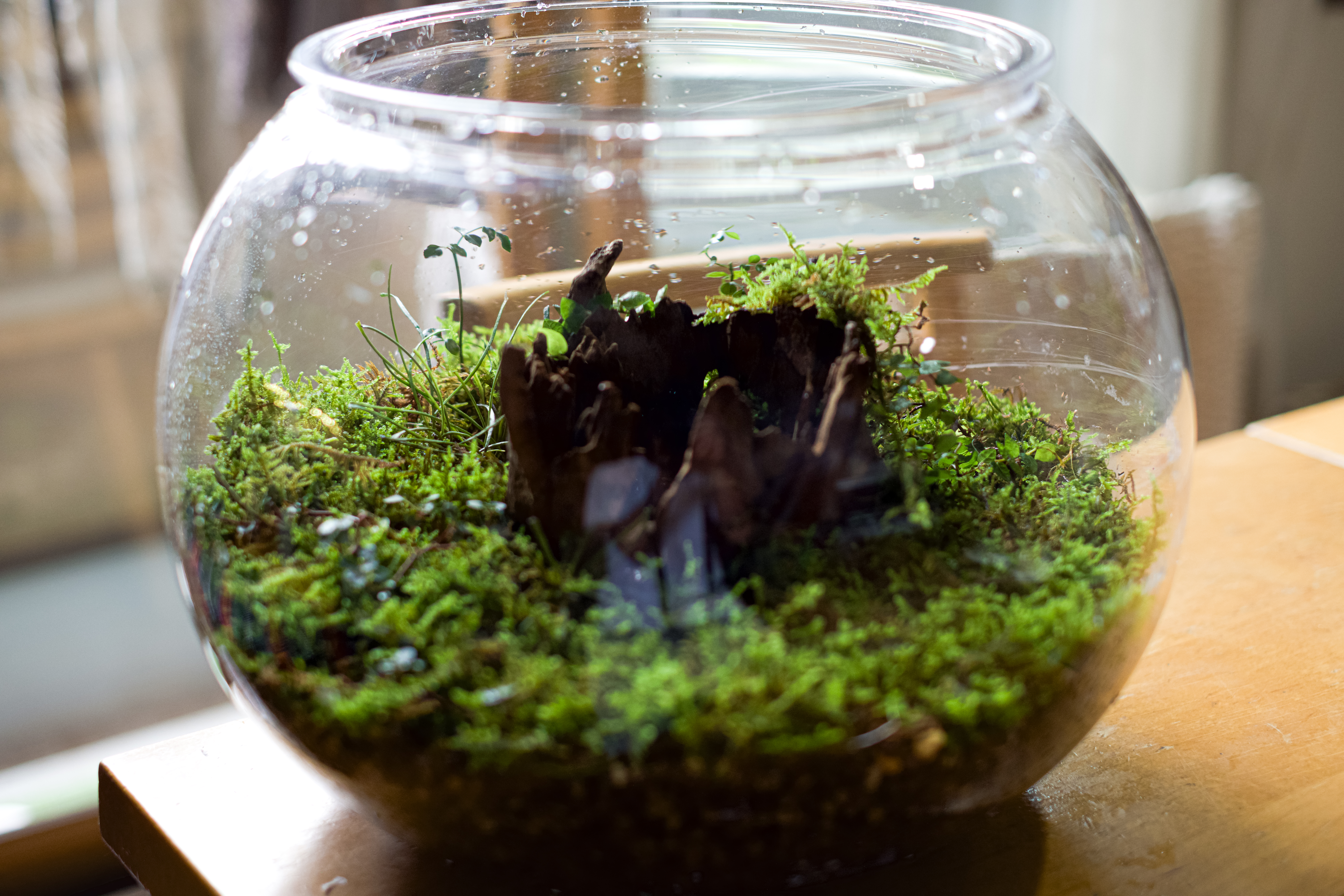 ガラス容器の中で小さな自然を再現できるので、